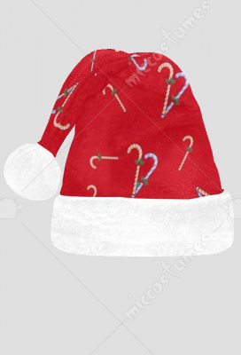 Adults Flannel Christmas Hat Candy Cane Pattern Unisex Santa Hat for Xmas New Year Festive Holiday Party Supplies