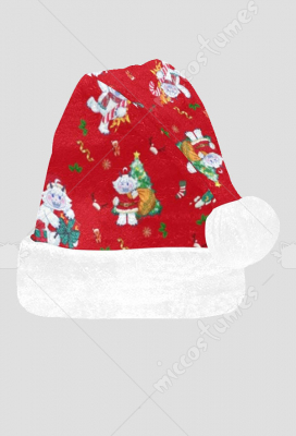 Adults Flannel Christmas Hat Bear Snow Santa Pattern Unisex Santa Hat for Xmas New Year Festive Holiday Party Supplies