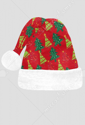 Adults Flannel Christmas Hat Christmas Trees Pattern Unisex Santa Hat for Xmas New Year Festive Holiday Party Supplies
