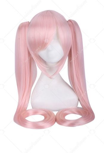 Vocaloid Sakura Miku Hatsune Pink Long Double Tail Cosplay Wig