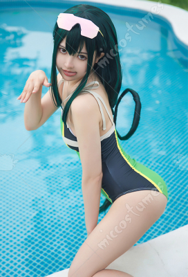 ®Haikyuu My Hero Academia Froppy Tsuyu Asui Cosplay Costume Woman Girls One Piece Shoulder Tie Beach Swimsuit High Cut Bodysuit Monokini Cute Strappy Swimwear Bathing Suit