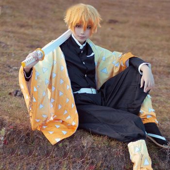 Demon Slayer: Kimetsu no Yaiba Zenitsu Agatsuma Cosplay Costume Halloween Demon