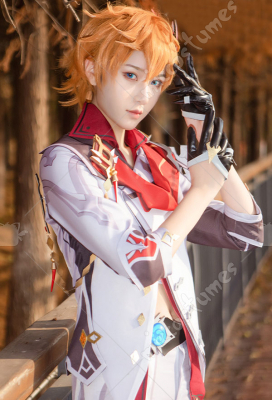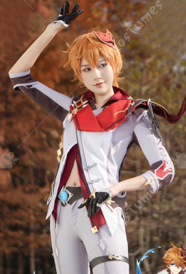 Genshin Impact Tartaglia Pendant Decorated Printed Pattern Uniform Set Cosplay Costume Outfit with Headdress Shoulder Armors Gloves Leg Strap Shawl Ear Clip Shoulder Accessory Waist Belt