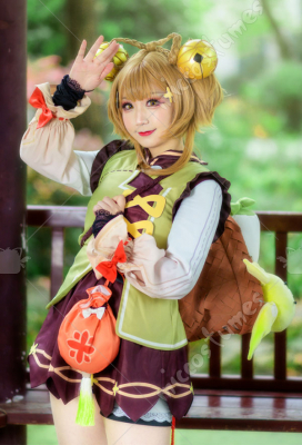Genshin Impact Yaoyao Top and Shorts Outfits Cosplay Costume Outfit with Little Bag Hand Cuffs Bell Shoes Stockings
