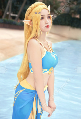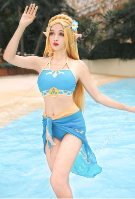 ®Haikyuu The Legend of Zelda: Breath of the Wild Princess Zelda Dereviated Halter Bikini Split Swimsuit Swimming Pants Swimwear Bodysuit Bathing Suit Outfit Cosplay Costume with Veil Dress