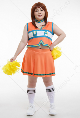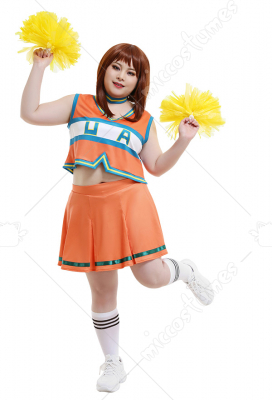 Plus Size My Hero Academia Ochako Tsuyu Cheer Uniform Cheerleaders Curvy Cosplay Costume Girls Dress with Cheerleading Flowers and Socks