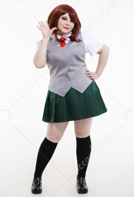 Plus Size My Hero Academia Ochako Tsuyu Nejire Hado Female Summer School Uniform Curvy Cosplay Costume with Vest and Tie