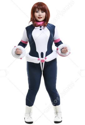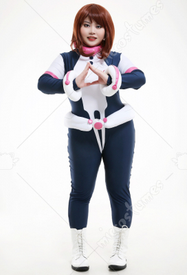 Plus Size My Hero Academia Ochako Uraraka Curvy Jumpsuit Bodysuit Cosplay Costume with Wrist Accessory and Neck Accessory