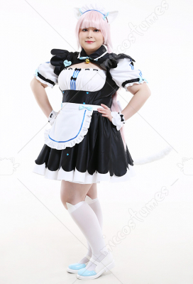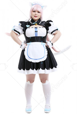 Plus Size Nekopara Vanilla Maid Dress Outfit Curvy Cosplay Costume with Cat Ears and Petticoat