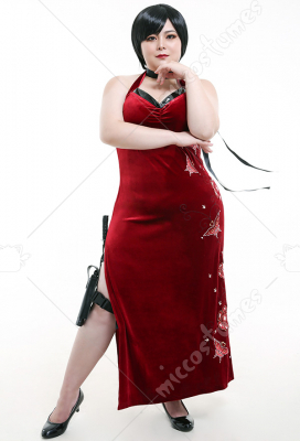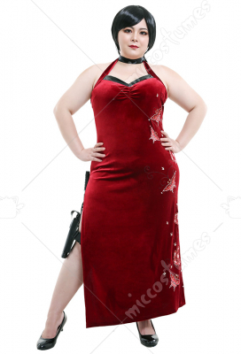 Plus Size Resident Evil 4 Ada Wong Cosplay Costume Embroidered Cheongsam Dress Curvy Cosplay Costume