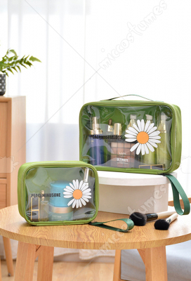 Beach-Use Transparent Clear Little Daisy Pattern Printed Portable Waterproof Toiletry Bag Travel Makeup Cosmetic Bag Accessory