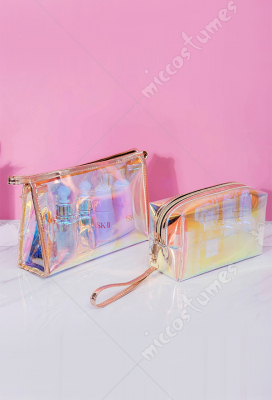 Beach-Use Transparent Clear TPU laser Waterproof Large Capacity Customizable Logo Pattern Printed Portable Toiletry Bag Travel Makeup Cosmetic Hanging Bag Accessory