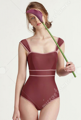 Woman Cute Sexy Color Contrast Pattern One-Piece Swimsuit Sportswear Swimming Suit Swimwear Bodysuit Bathing Suit Outfit for Hot Spring and Pool
