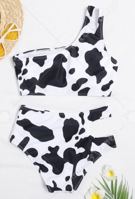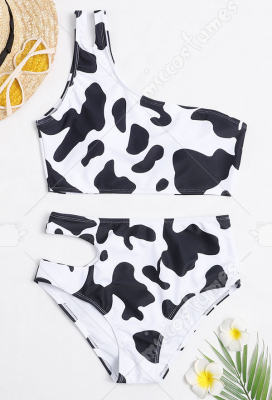 Woman Cute Sexy Cow Pattern Two-Piece Bikini Set Swimsuit Swimming Pants Swimwear Bodysuit Bathing Suit Outfit for Hot Spring and Pool