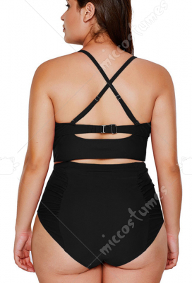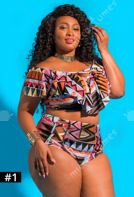 Woman Curvy Size Sexy Cute Two Piece Set Crossing Strapped Ruffle Decorated Top and Shorts Bikini Set Swimsuit Swimwear Bodysuit Beach Suit Bathing Suit