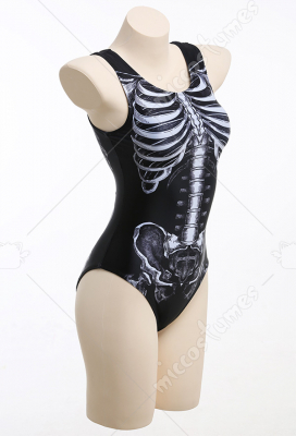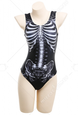 Woman Dark Gothic White Skeleton Pattern One-Piece Zentai Bodysuit Swimming Suit Bathing Suit Beach Swimsuit Outfit Cosplay Costume