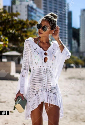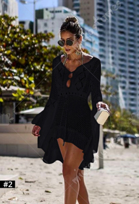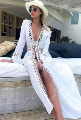 Woman Elegant Hollow Style Crotchet-Trim Tie-Front V Neck Hollow Style Long Sleeved Beach Wrap Kimono Cover Up Shawl Outfit Accessory for Spring Summer