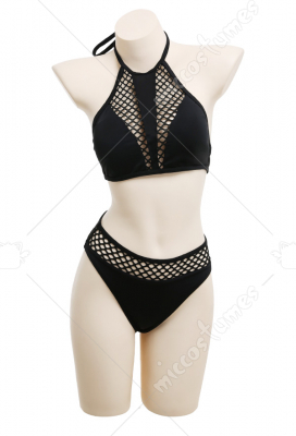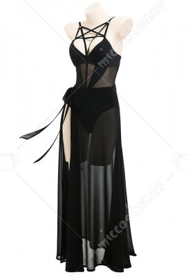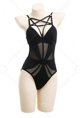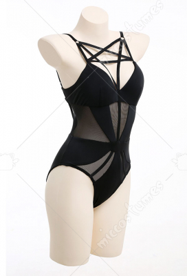 Woman Gothic Dark Style Net Yarn Spliced One-Piece Front Crossover Swimming Suit Tummy Control Bathing Suit Beach Swimsuit Outfit Cosplay Costume
