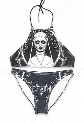 Woman Halloween Cool Halter Num Pattern Two-Piece Swimwear Top Swimming Pants Swimsuit Swimming Suit Swimwear Bodysuit Bathing Suit Outfit for Hot Spring and Pool