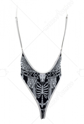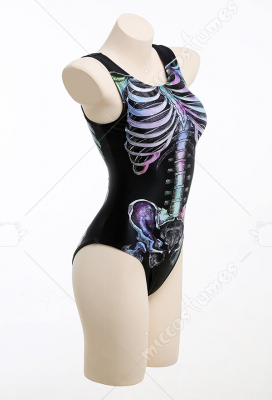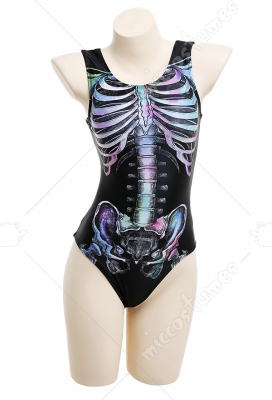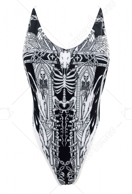Woman Gothic Style Skeleton Pattern Printed One-Piece Vest Bodysuit Swimming Suit Bathing Suit Beach Swimsuit Outfit Cosplay Costume