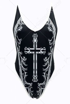Woman Halloween Cool Sexy Cross Pattern One-Piece Swimwear Top Swimming Lingerie Swimsuit Swimming Suit Swimwear Bodysuit Bathing Suit Outfit for Hot Spring and Pool