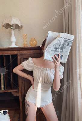 Woman Japanese Style Cute Sexy Lace Pattern One-Piece Short Sleeves Swimsuit Swimming Suit Swimwear Bodysuit Bathing Suit Outfit for Hot Spring and Pool