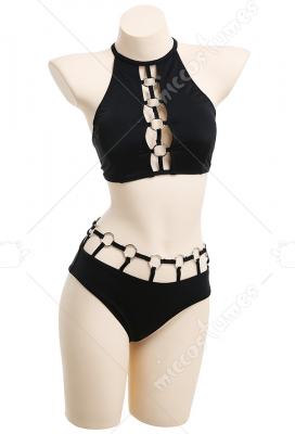 Woman Gothic Style Ring Decorated Bikini Set Two-Piece Swimming Suit Bathing Suit Beach Swimsuit Outfit Cosplay Costume