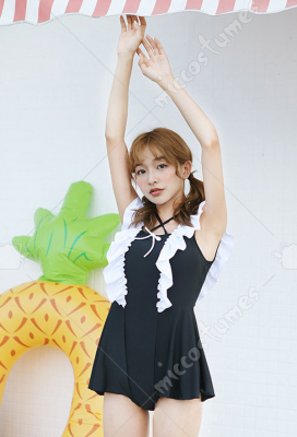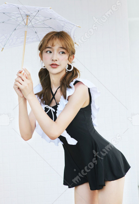 Woman Japanese Style Cute Sexy Maid Lace Pattern One-Piece Swimsuit Swimming Suit Swimwear Bodysuit Bathing Suit Outfit for Hot Spring and Pool