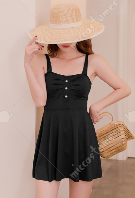 Woman Sexy Cute One Piece Buttons Decorated Backless Lingerie Dress Swimsuit Bodysuit Beach Swimwear Suit Bathing Suit
