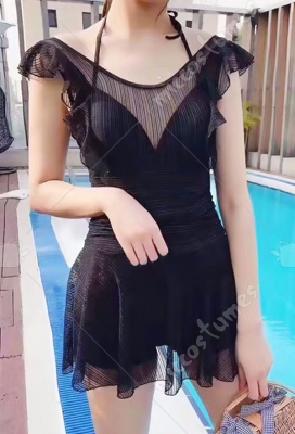 Woman Sexy Cute One Piece Lotus Lace Round-Shape Collar Halter Neck Dress Swimsuit Bodysuit Beach Swimsuit Bathing Suit