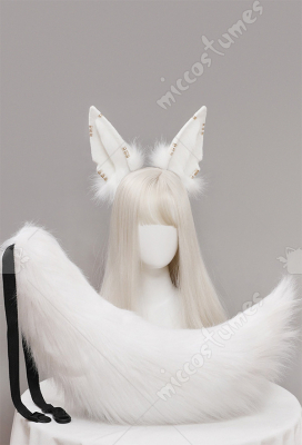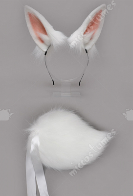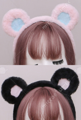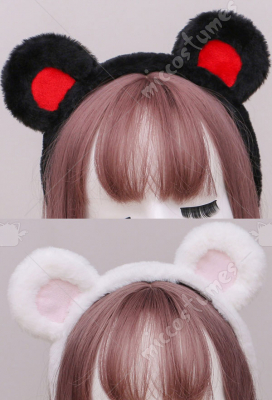 Women Japanese Style Lolita Plush White Bear Ears Handmade Headband KC Animal Cosplay Accessory Headdress Outfit