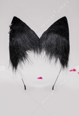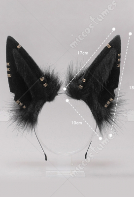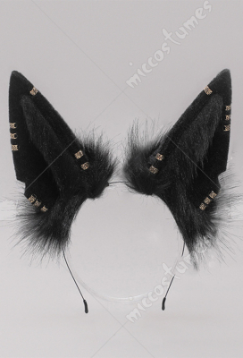 Women Kawaii Lolita Black Furry Anubis Derivative Headwear Handmade Faux Fur KC Headband Animal Cosplay Accessory Headdress Outfit