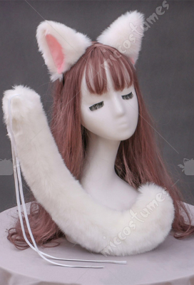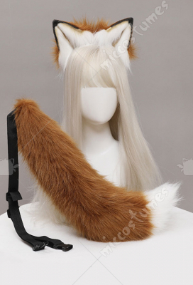 Women Kawaii Orange Brown Fox A Type Colorful Plush Ears KC Handmade Faux Fur Headband Animal Cosplay Accessory Headdress Outfit Set with Tail