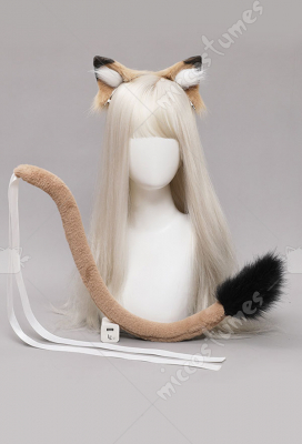 Women Arknights Siege Kawaii Camel Color Lion Plush Ears Handmade Faux Fur Hair Clips Animal Cosplay Accessory Headdress Outfit Set with Tail