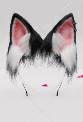 Women Japanese Style Husky Dog Furry Ears Headband Animal Faux Fur Hairband Cosplay Accessory for Halloween with Metal Rings Decoration