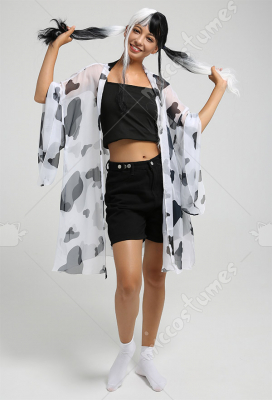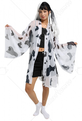 Women Cartoon Cow Pattern Print Kimono Jacket Haori Cover-Up Cosplay Costume Outfit