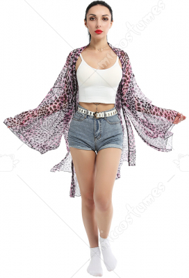 Women Adult Pink Leopard Pattern Print Kimono Haori Cover-Up Cosplay Costume Outfit