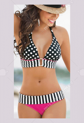 Women Cute Two Piece Bikini Swimsuit Halter Neck Backless Swimwear Sexy Wave Point Tied Beach Wear Bathing Suit with Pads