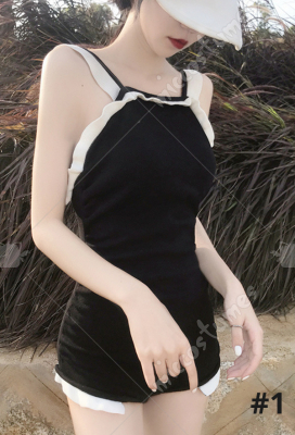 Women Cute Ruffled Sleeveless Monokini Swimsuit One Piece Back Hollow Swimwear Sexy Beach Wear Bathing Suit with Pads