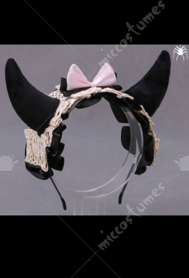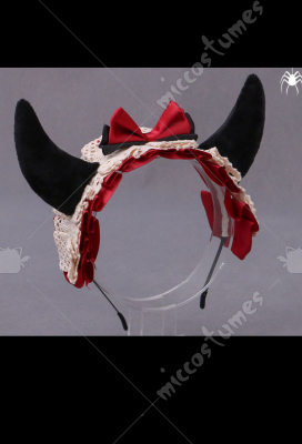 Women Lolita Cute Headdress Imp Devil Horn Lace Headwear Ribbon Bow Headband Cosplay Costume Accessories