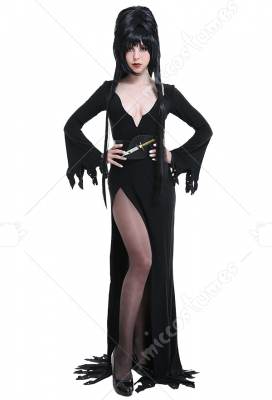 Elvira Mistress of the Dark Elvira Cosplay Costume Gothic High Split Retro Dress for Halloween
