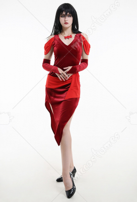 Miss Bellum Long Sleeved Red Suit Suit-Like Low Chest Dress Wrap Skirt Outfit Cosplay Costume with Black Belt and Necklace