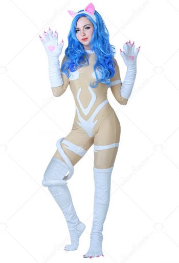 Darkstalkers Felicia Cosplay Costume Bodysuit Jumpsuit with Cat Ears and Tail