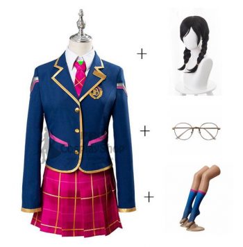 Overwatch D.Va Hana Song School Cosplay Costume Uniform Full Set With Wigs