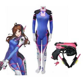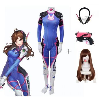 Overwatch D.Va Hana Song Cosplay Costume Jumpsuit With Wigs Headset and Gun