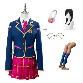 Overwatch D.Va Hana Song School Cosplay Costume Uniform Full Set With Wigs Headset Glasses Socks