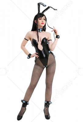 Gantz Reika Shimohira Bunny Girl Sexy Jumpsuit Black Leather Bodysuit Full Set Cosplay Costume with Rabbit Ears and Pantyhose