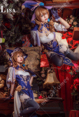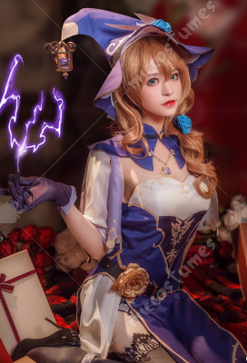 Genshin Impact Lisa Sexy Purple and White Chest Open Cheongsam Dress Full Set Cosplay Costume with Witch Hat and Stockings