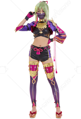 Genshin Impact Kuki Shinobu Cosplay Costume Short Halter Top and Jacket with Shorts and Belt