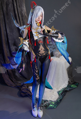Genshin Impact Shenhe Cosplay Costume Waist Cutout Bodysuit with Earrings Gloves